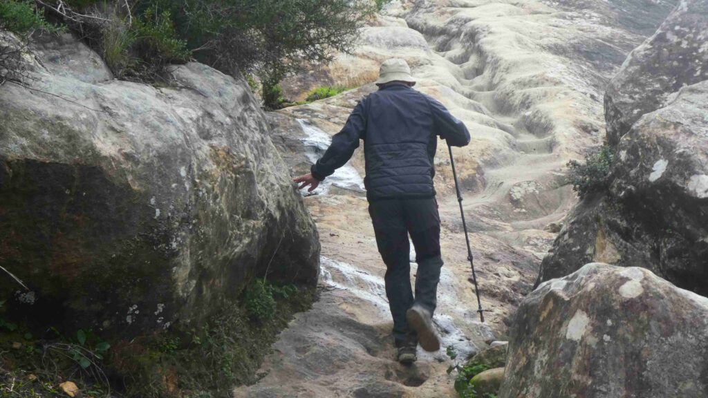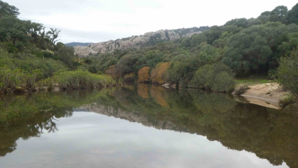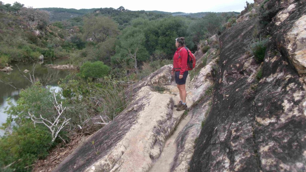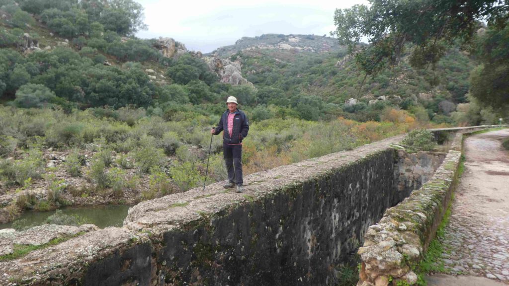 19 december: vanmorgen gaan we, voor ons doen, vroeg op pad. Karin heeft een leuke rondwandeling gevonden vanaf de camping langs de rivier Hozgarganta. Het is helaas bewolkt en fris wanneer we op pad gaan, maar al snel kan er een laagje kleding uit vanwege het klim- en klauterwerk. We wandelen tussen de kurkeiken en eucalyptusbomen en komen op een gegeven moment bij de ruïnes van een munitiefabriek uit 1761, gebouwd in opdracht van Carlos III.