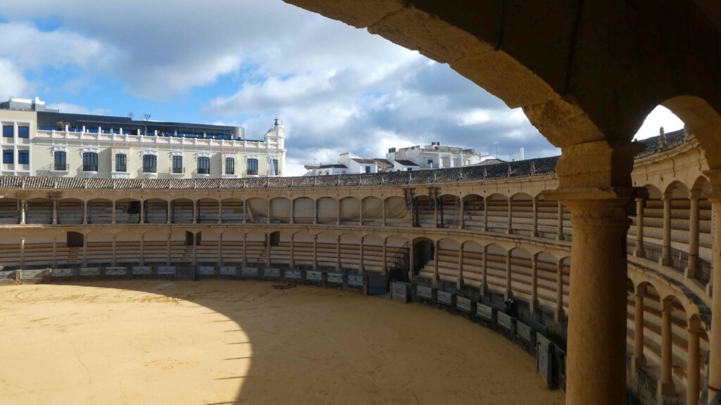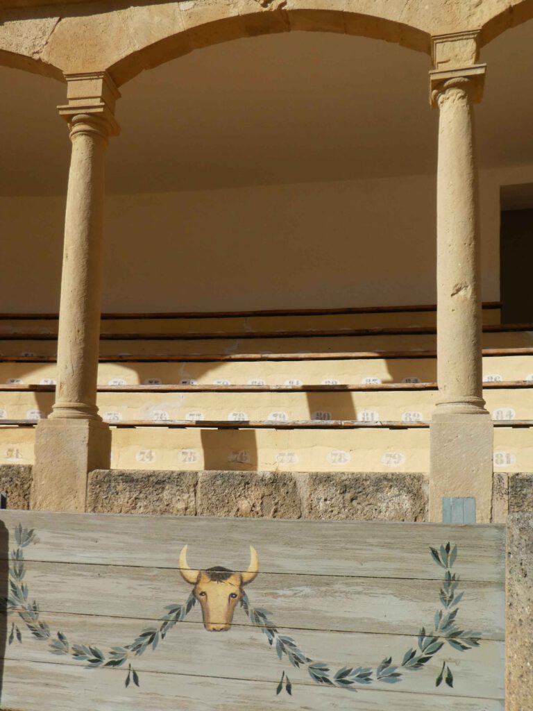 Via de noordzijde wandelen we de gezellige binnenstad in. We bezoeken de Plaza de Toros uit 1785, waar de oudste arena van Spanje staat. Het museum vertelt over de geschiedenis van het stierenvechten en laat vele kostuums en voorwerpen zien. De arena zelf is een beetje verwaarloosd, maar er wordt hard aan gewerkt. De ruimtes waar de stieren werden gestationeerd en alle voorzorgmaatregelen die er getroffen werden, om niet in één ruimte met de stier te komen, vinden wij heel interessant.