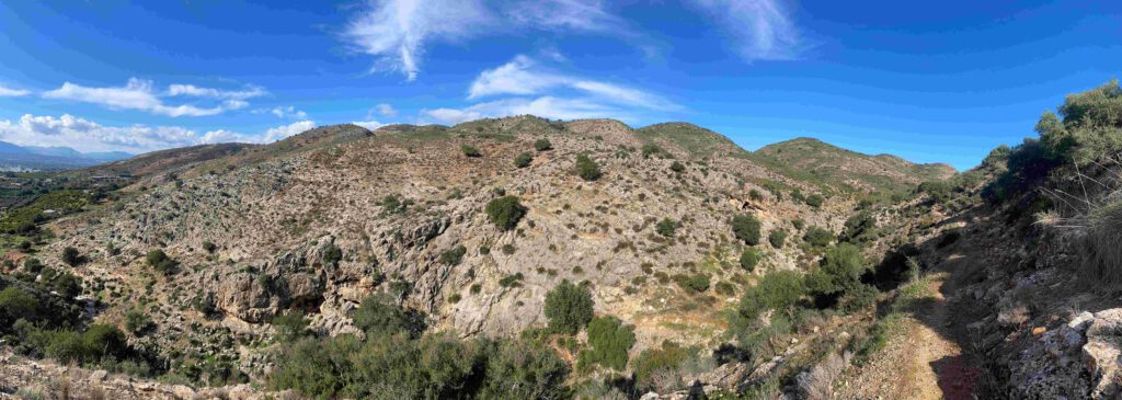 We dalen steil af naar een pas op 620 meter hoogte, om vanaf hier een deel van de GR 249.2 richting Mijas te volgen. Deze route blijft redelijk op hoogte, zodat we heel ontspannen kunnen genieten van de omgeving. Na de lunch beginnen we aan de lange afdaling naar Benalmadena. Na ruim 12 km gewandeld te hebben door mooi berglandschap, zijn we terug bij de auto. Nu we toch zo dicht bij zee zijn, rijden we nog naar het strand van Torremolinos en wandelen naar de jachthaven. Bootjes kijken blijft leuk! Onderweg naar de caravan stoppen we nog bij de supermarkt en inmiddels is het begonnen met spetteren. Een voorgegaarde kip staat vanavond op het menu, dus lekker makkelijk!