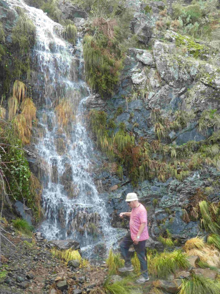 31 december: Karin heeft een leuke korte wandeling, langs en af en toe door een beek, gevonden in de buurt, de Sendero Barranco Blanco, die eindigt bij een mooie waterval. De waterschoentjes en een handdoek zijn ingepakt, dus kom maar op met de uitdagende wandeling. Wanneer we aan het pad beginnen, blijkt deze totaal overwoekerd te zijn en het water in de beek staat te hoog om comfortabel door heen te waden. Dus na een paar meter geprobeerd te hebben, keren we op onze schreden terug.