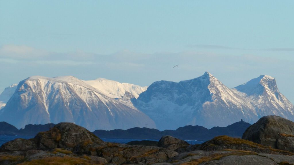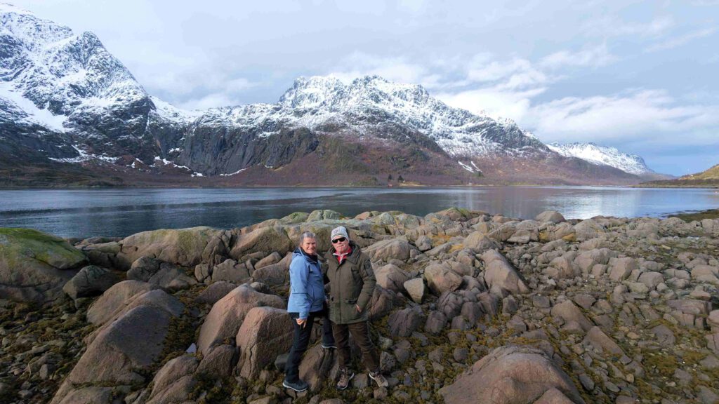 27 maart: we worden wakker met stralend weer en verse sneeuw op de bergen, dus er kunnen zeer fotogenieke plaatjes geschoten worden😁. Men hoopt natuurlijk op alle dagen zulk mooi weer en iedere nacht het noorderlicht te kunnen aanschouwen, maar helaas is dat een utopie. We genieten nog even van dit moment in Svolvaer en pakken om 15.00 de bus naar ons hotel vlakbij het vliegveld Evenes. Het is een lange rit van ruim drie uur en voert ons door schitterend Noors landschap.