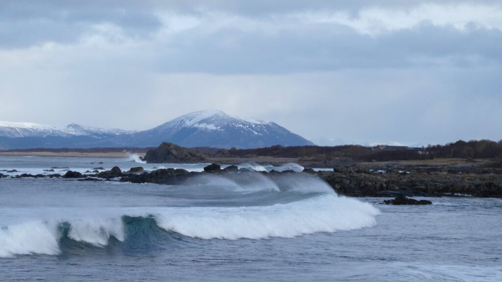 23 maart: niet normaal wat een storm is er vannacht over de Lofoten geraasd! En ook vanmorgen waait het nog heel hard en zien we vanuit ons bed de golven mooi breken op de rotskust. We lopen naar het centrum om onze huurauto op te halen en doen daarna de boodschappen. Na de lunch stappen we in de auto en maken we een paar uitstapjes. Ons appartement staat op het eilandje Svinoya. In de omgeving hangt een sterke vislucht en die komt aanwaaien vanaf de vele stokvis droogrekken. Er is nog plek op de rekken, maar er hangen best veel vissenkoppen en kabeljauwstukken. Het ziet er niet echt appetijtelijk uit🤔.
