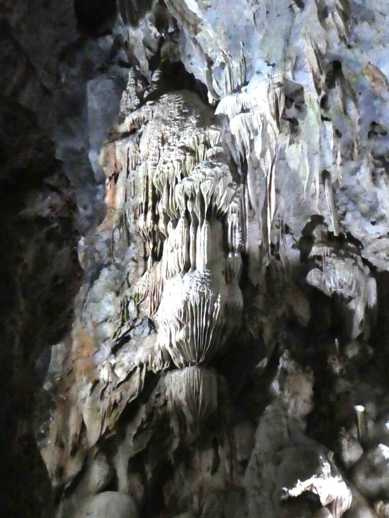 15 maart: vandaag hebben we veel te doen, want we gaan eerst een grottenstelsel bezoeken en daarna een rondwandeling maken. De zon schijnt volop en het belooft warmer dan 23 graden te worden; en dat half maart! We rijden naar Spelaio Limnon (Cave of Lakes) bij het dorpje Kato Lousi. We kunnen meteen aansluiten bij de tour en gelukkig wordt er ook uitleg in het Engels gegeven. Het grottenstelsel heeft haar naam te danken aan het feit dat er 13 meren aanwezig zijn, waarvan er drie door ons te bezichtigen zijn. Helaas heeft het de afgelopen twee jaar niet voldoende geregend of gesneeuwd, zodat er nu maar één meertje gevuld is met water. Desalniettemin zijn de gevormde stalactieten en stalagmieten indrukwekkend, vooral de prachtige lamellen. Aangezien we maar 500 meter de grot in kunnen, duurt de tour veel te kort, naar ons zin. De rest van het stelsel is alleen toegankelijk voor de speleologen😞. Wellicht toch maar een extra hobby gaan zoeken.