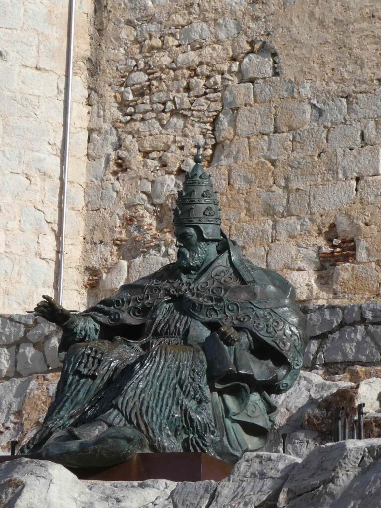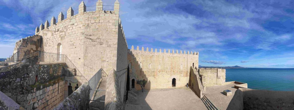 25 januari: na het ontbijt stappen we op de fiets en rijden we naar Penìscola. Het plaatsje is nagenoeg uitgestorven, maar zomers krioelt het hier van de toeristen, te zien aan de vele hotels en appartementencomplexen. De oude stad heeft veel beschavingen voorbij zien komen, met onder anderen de Carthagers, Romeinen, Arabieren, Byzantijnen, Grieken en Feniciërs. De oude stad was de thuisbasis van paus Benedictus XIII, de Pape de Luna, die hier in 1411 zetelde. Hij is een van de drie pausen die hun zetel hadden buiten Vaticaanstad. Op de rots, met een top van 64 meter boven zeeniveau, staat een 14de-eeuwse burcht. Het kasteel, strategisch gelegen op een schiereiland en gebouwd tussen 1294 en 1307, was het laatste bolwerk van de Tempeliers en later de paus. Natuurlijk bezoeken wij dit bouwwerk en zijn onder de indruk van de grootsheid.
