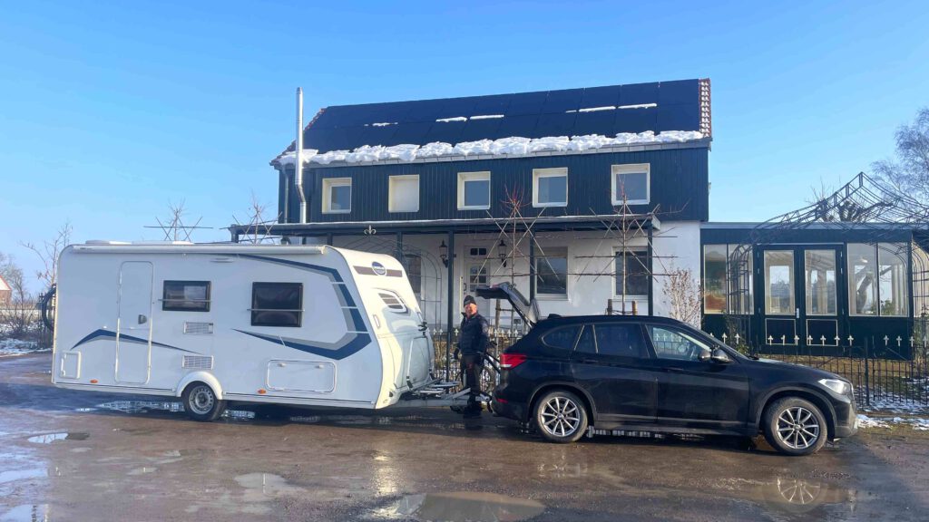 29 januari: na een heerlijke stille en donkere nacht in de Luxemburgse bossen, maken we ons klaar voor de vierde reisdag. Het campingbedrag deponeren we in de brievenbus en we verlaten Luxemburg. Nog even alles voltanken voordat we België inrijden, want het scheelt aanzienlijk in de prijs. Voor vandaag staat een kleine omweg gepland naar ons eindpunt Markelo, aangezien we bij Maaseik heel goedkoop petroleum kunnen kopen voor onze oliekachel thuis. Tevens rijden we naar Lommel, waar we de gasflessen voordelig kunnen laten vullen. Dit scheelt ons een flinke slok op vele borrels! En borrels, die lust Gido wel. Karin houdt deze adresjes gepind in Maps.me, zodat we bij volgende reizen naar het zuiden ze gemakkelijk kunnen terugvinden😁. Na de lunch vervolgen we de reis naar camping Auf Grietherort, gelegen aan de Rijn tussen Rees en Emmerich. Karin heeft gebeld met de Nederlandse uitbater en we kunnen terecht op de kampeerweide, maar deze is wel zeiknat door de sneeuw. We mogen van hem op de gravelweg gaan staan als we aankomen bij het veld. We gokken het er op, want er zijn niet veel campings open in dit jaargetijde.