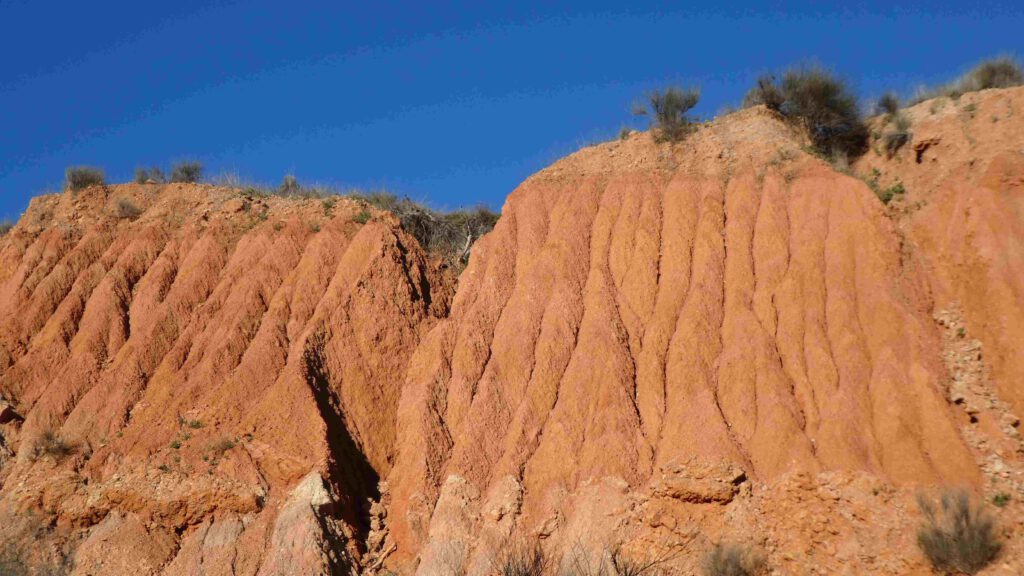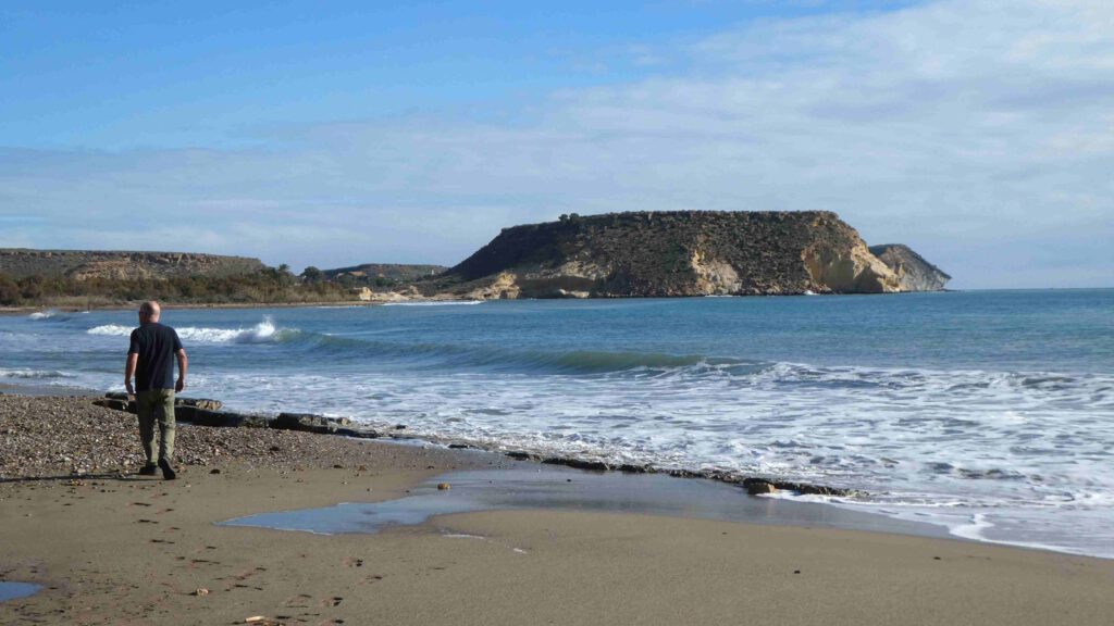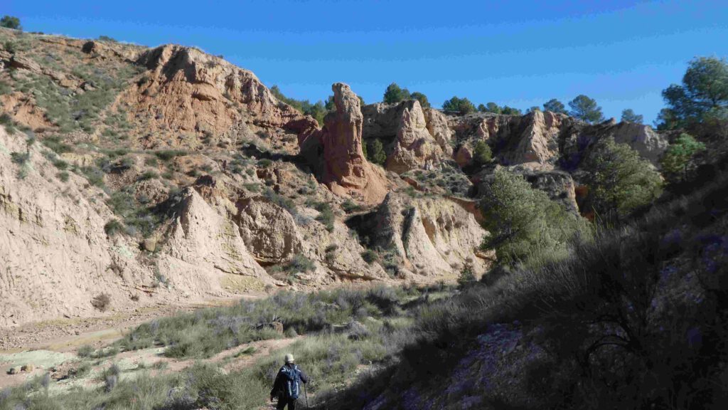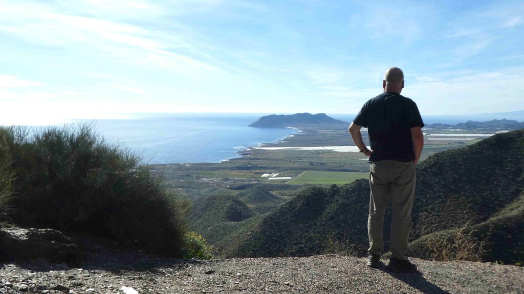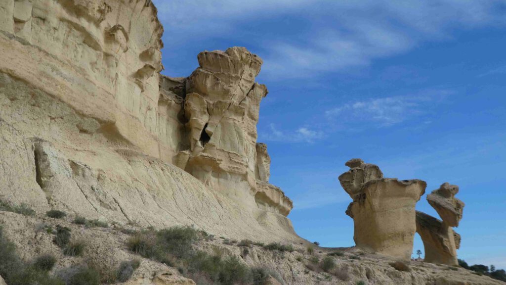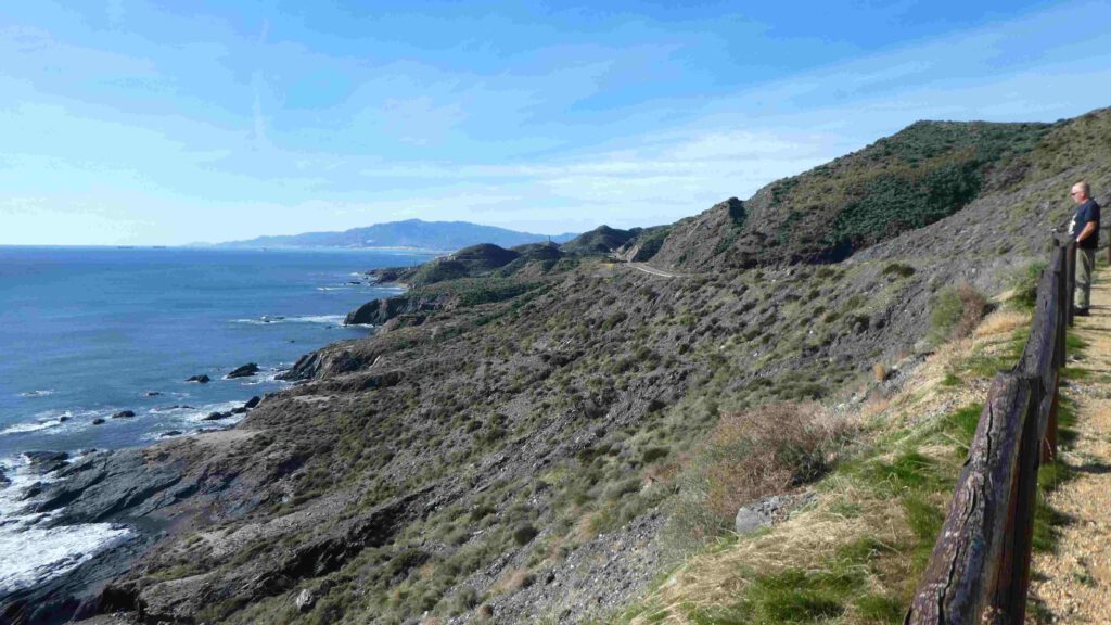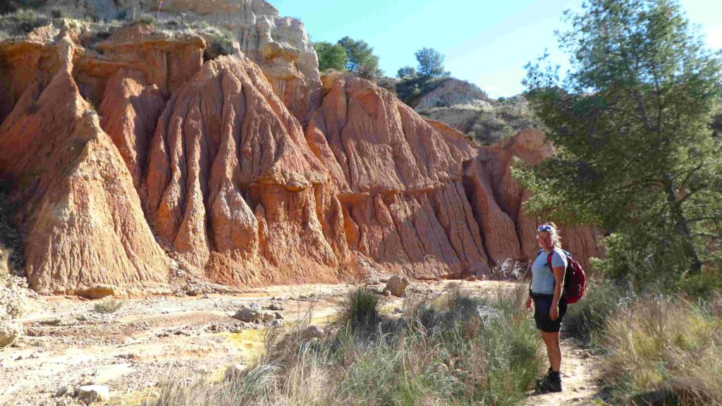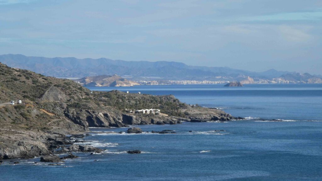 21 januari: de zeegoden zijn ons niet gunstig gezind, want het is wederom te onstuimig om een zeebad te nemen. We doen het rustig aan en genieten nog even van de zon, voordat we onze reis voortzetten richting Murcia. We volgen de toeristische route langs de kust en worden getrakteerd op mooie uitzichten. Langs deze kust wordt er, overal waar maar, kan vrij gekampeerd en de plekken zijn druk bezocht! Karin spelt iedere geschikte plek alvast in Maps.me, zodat we bij een eventuele volgende winterreis naar Spanje de plekjes weten te vinden😉. Playa del Arroz bij Cabo Cope staat op nummer één. De lunch nuttigen we op het strand van Bolnuevo. Hier heeft de erosie mooie sculpturen gemaakt in het losse gesteente. We verlaten nu de kust en rijden richting Murcia. Hier staan we in de Sierra Espunta op de zeer basic camperplaats Campo Toni voor 12 euro. Het allerbelangrijkste is aanwezig; water, stroom en de mogelijkheid om de wc te ledigen. De rest van de middag onderhouden we ons met de Belgische buurman en treft Karin voorbereidingen voor morgen, want dan staat er een mooie wandeling gepland.