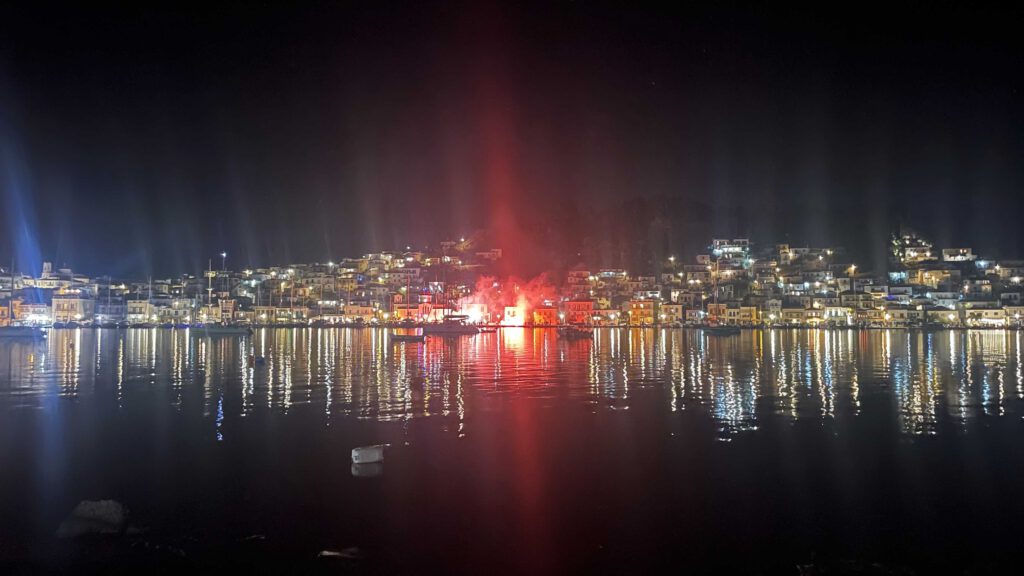 Na een korte wandeling rijden we verder richting de kust en lunchen we in Kilada. Dit is om de hoek bij de omheinde vakantievilla van Willem Alexander en Maxima. Jammer dat we geen drone meer hebben, maar wellicht was deze door de beveiliging uit de lucht geschoten😁. We willen onderweg nog bij een mooi strand zwemmen, maar er staat een te harde wind, dus we besluiten door te rijden naar onze overnachtingsplek. Dit keer staan we op een parkeerplaats bij de haven in het plaatsje Ermioni. Naast ons komen twee Griekse caravans staan en voor ons staat al een Griekse camper. Dat vinden wij vreemd, omdat we tot nu toe nog weinig rondtrekkende Grieken gezien hebben. Maar het is natuurlijk paasweekend, dus ook de Grieken zullen wel zin hebben in een weekendje weg. Als tegen 20.00 uur ook nog eens de gehele parkeerplaats volstroomt met auto’s waar hele gezinnen uitstappen, dan zal er wel iets te doen zijn in Ermioni. En ja hoor, de paasprocessie is de reden dat al deze mensen hier naar toe zijn gekomen. Op internet heeft Karin gelezen dat er morgen om middernacht vuurwerk wordt afgestoken en op paaszondag steken ze Judas in de fik. Op deze mensonterende daad blijven we echter niet wachten, wij rijden morgen weer verder. In de andere plaatsjes zal vast ook van alles te zien zijn.