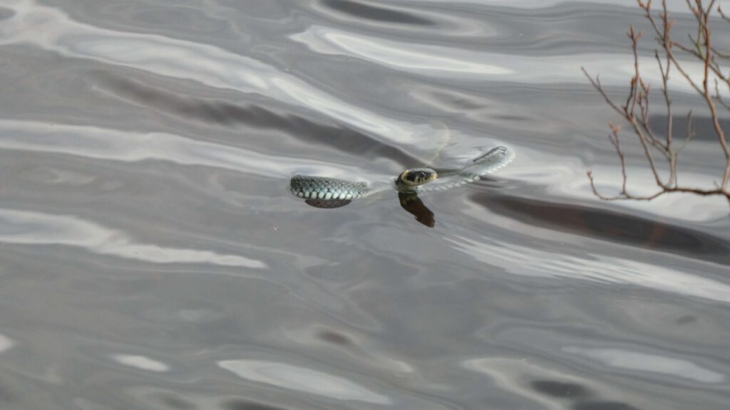 We waren trouwens niet de enige die in het meer aan het zwemmen waren. Ook een kleine ringslang hield ons gezelschap.