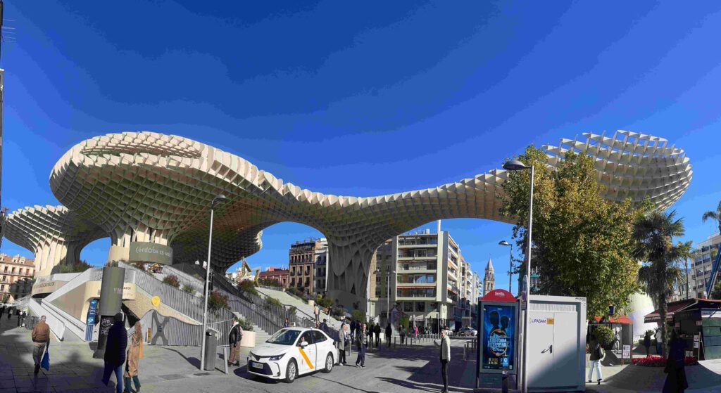 Met weer nieuwe energie in ons lijf, slenteren we door de mooie straatjes van Sevilla en weten we ons in te houden om niet van alles en nog wat te kopen. We genieten volop van alle prachtige gebouwen en huizen. Het kunstwerk Metropol Parasol, oftewel paddenstoel genaamd, kan ons echter niet heel erg bekoren. Foto’s op internet geven een mooier beeld van dit bouwwerk dan het in werkelijkheid is, vinden wij althans😞.