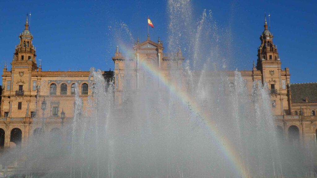 We wandelen terug naar het oude centrum en relaxen op een bankje in de zon bij het Alcazar Real. Aangezien het al te laat in de middag is en de deuren bijna sluiten, besluiten we deze te gaan ontdekken bij ons tweede bezoek aan de stad, zodat we rustig de tijd ervoor kunnen nemen. Nu lopen we door naar een andere bezienswaardigheid, Plaza de Espana. Dit daadwerkelijk schitterende “paleis” en het park eromheen, zijn gebouwd/aangelegd in 1928 vanwege de Iberische-Amerikaanse Expositie in 1929. Zeker met het gouden uurtje is het voor Karin moeilijk om haar fotocamera in de tas te houden😂. Na een drankje op een terras, besluiten we om de dag voor gezien te houden (Gido heeft na al het slenteren toch wel wat last van zijn rug) en stappen op de metro terug naar onze auto. Bij de caravan nog even wat op de BBQ gooien en de dag is al weer bijna ten einde. Maar wat een geweldig mooie dag in het prachtige Sevilla!