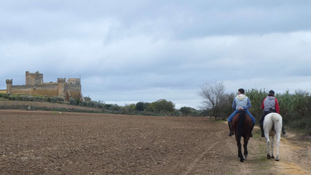 4 december: na een dag slenteren door een stad en enorme kathedraal, zijn deze oudjes toe aan een iets rustigere invulling van de dag😂. Karin heeft een leuke wandeling op internet gevonden niet ver van onze kampeerplaats af. Deze brengt ons als eerste langs de imposante burcht Marchenilla uit de 12e eeuw. Deze is niet te bezichtigen en het ziet ernaar uit dat er tegenwoordig een hele grote hoeve aangebouwd is.
