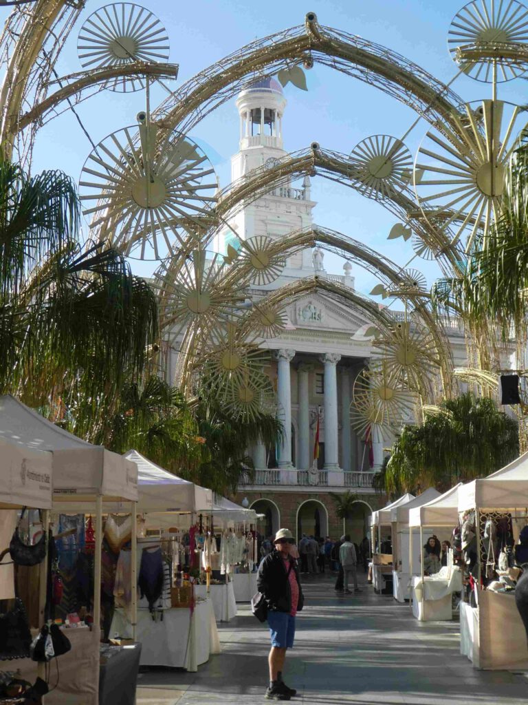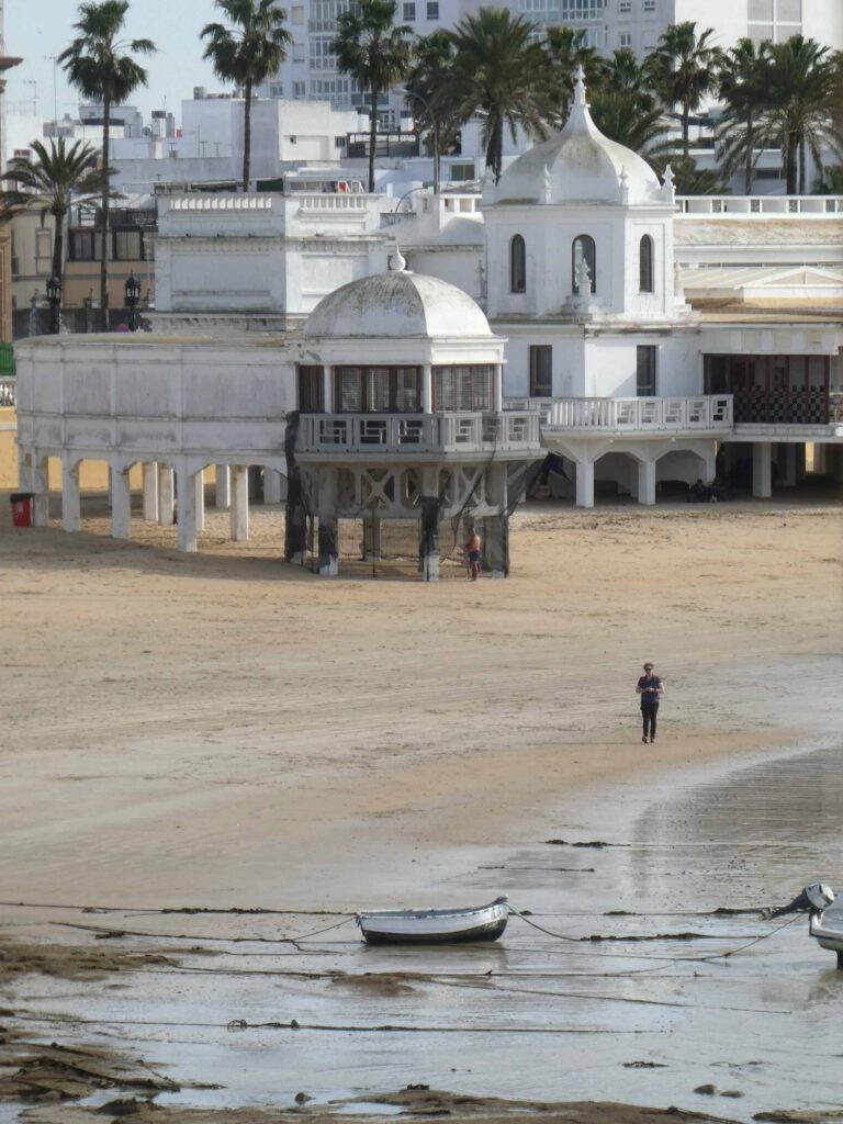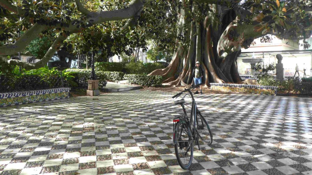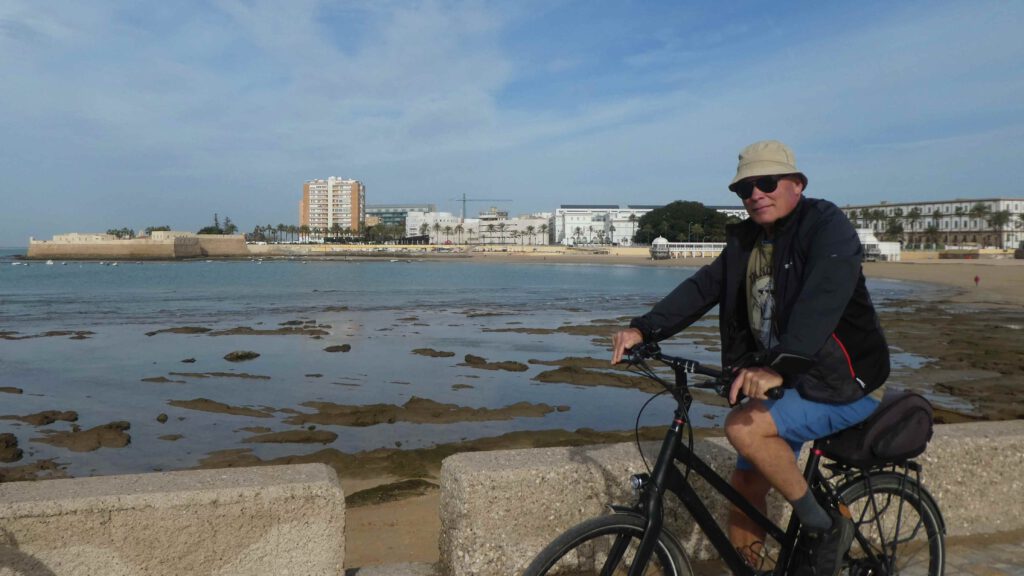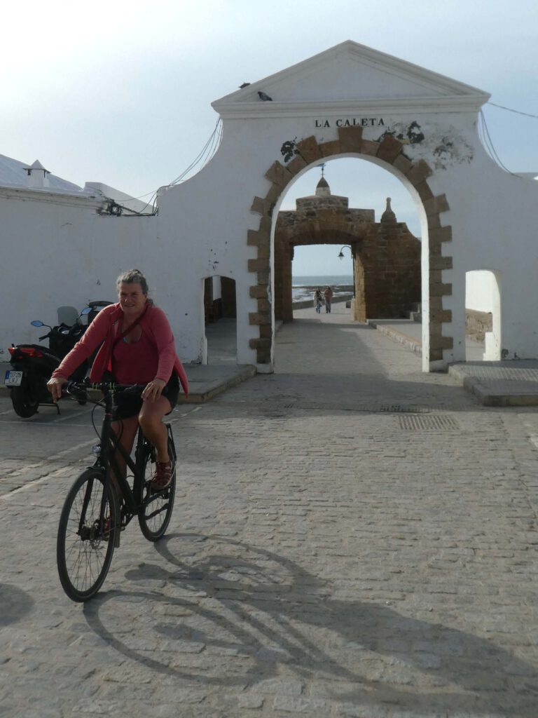 9 december: wat is het toch heerlijk uitslapen in de caravan, mede doordat de zon pas tegen half acht opkomt😉. Gido gaat nog even water tappen in de haven aangezien de tank bijna leeg is, voordat we op het voetveer (de fietsen mogen mee) naar Cadiz stappen. Een half uur later stappen we van de boot af en gaan we eerst lopend te stad verkennen. En ook Cadiz is weer een zeer levendige stad, volgehangen met prachtige kerstversieringen. Op de Mercado kopen we voor de lunch een paar lekkere pinchos en genieten we van de Spanjaarden om ons heen. We verstaan er geen woord van, maar het zou zo maar een toneelstuk kunnen zijn😁. Al slenterend door de vele smalle straatjes komen we uiteindelijk weer terug bij de fietsen. Gido heeft onderweg nog twee nieuwe T-shirts gekocht; hoezo zijn vrouwen koopziek? Rond de stad ligt een fietspad langs de kust, waar we gebruik van gaan maken. Onderweg komen we een eeuwenoude Ficus tegen, die in ons huis in ieder geval niet meer zou passen😂.