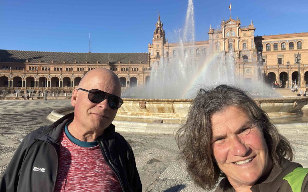 We wandelen terug naar het oude centrum en relaxen op een bankje in de zon bij het Alcazar Real. Aangezien het al te laat in de middag is en de deuren bijna sluiten, besluiten we deze te gaan ontdekken bij ons tweede bezoek aan de stad, zodat we rustig de tijd ervoor kunnen nemen. Nu lopen we door naar een andere bezienswaardigheid, Plaza de Espana. Dit daadwerkelijk schitterende “paleis” en het park eromheen, zijn gebouwd/aangelegd in 1928 vanwege de Iberische-Amerikaanse Expositie in 1929. Zeker met het gouden uurtje is het voor Karin moeilijk om haar fotocamera in de tas te houden😂. Na een drankje op een terras, besluiten we om de dag voor gezien te houden (Gido heeft na al het slenteren toch wel wat last van zijn rug) en stappen op de metro terug naar onze auto. Bij de caravan nog even wat op de BBQ gooien en de dag is al weer bijna ten einde. Maar wat een geweldig mooie dag in het prachtige Sevilla!
