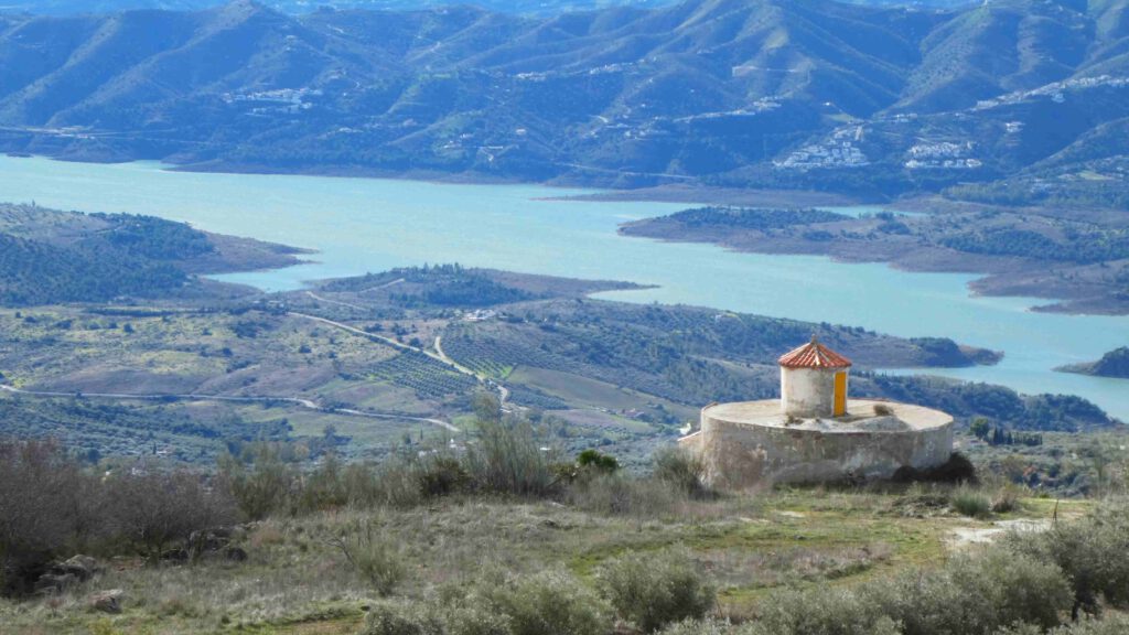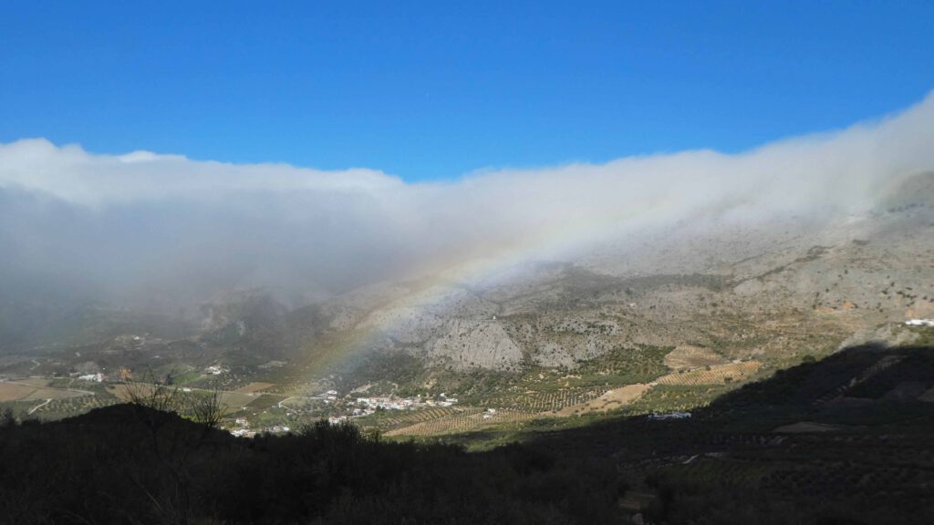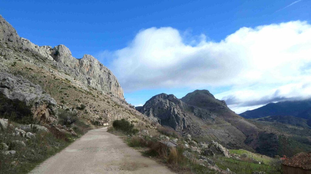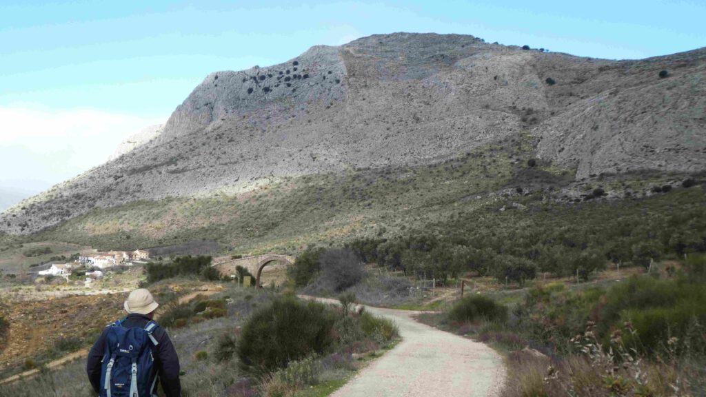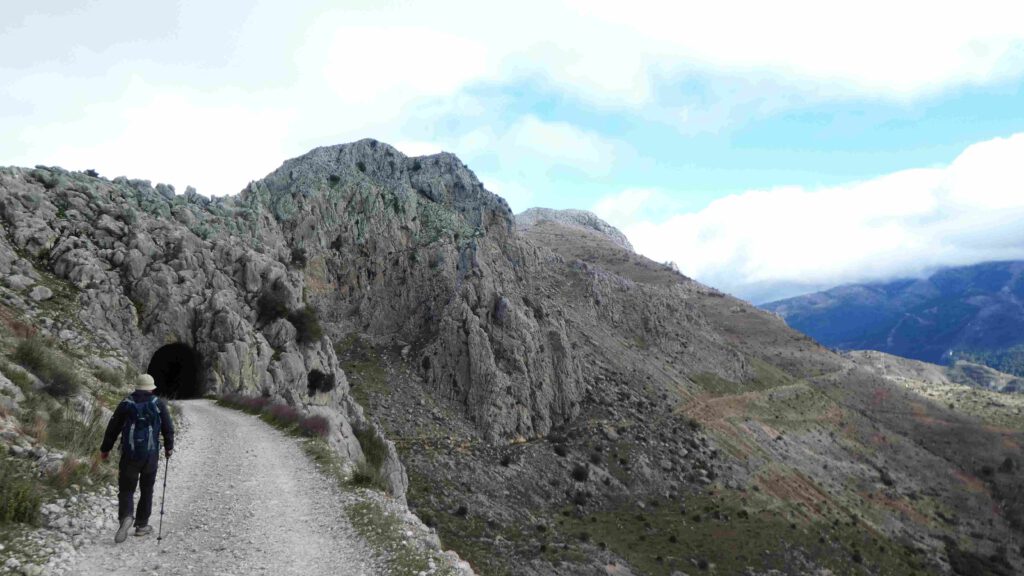 9 januari: Gido voelt zich gelukkig een stuk beter en wil vandaag wel wandelen in de bergen. Karin heeft een via-verde route gevonden vanaf Puerto de Zafarraya, op 916 meter hoogte. Het voordeel van zo’n route is dat we in de bergen wandelen, maar nauwelijks hoogteverschillen hebt, aangezien we over een oud treintraject lopen. Als we de auto uitstappen, moeten we ons schrap zetten vanwege de harde wind! We wandelen langs de toppen van het Tajo de la Gueya gebergte en passeren het gehucht Fuente Carrion. De bewoners zijn druk op het land bezig met de voorbereidingen voor de olijvenoogst. Na ruim 7 km gewandeld te hebben, keren we terug op onze schreden. Beiden hebben geen trek in onze boterhammen, wat geen goed teken is. Gido is nog niet helemaal tiptop in orde en de darmen van Karin laten zich luidkeels horen😟. Er moet een paar keer een stilstofdepositie-stop gehouden worden en Karin ziet als een berg op tegen de terugreis in de auto. Doodziek stapt ze de auto een paar keer uit en is ze blij dat ze in de caravan een beetje comfort heeft. Het zal een zware nacht worden😞.