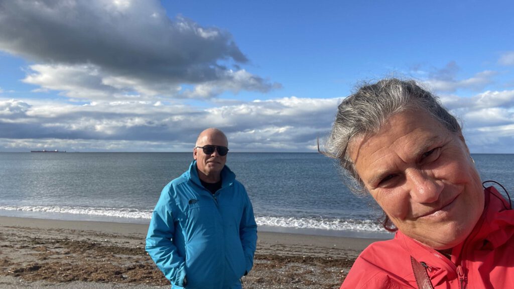 14 december: we worden wakker met een zonnetje! Na de koffie en thee op bed lopen we naar het strand om een frisse duik in de oceaan te nemen. Nou dat heeft Karin geweten! Volledig overrompeld door de kracht van het water komt ze hoestend en proestend weer boven. Gido laat het maar aan zich voorbij gaan😂.