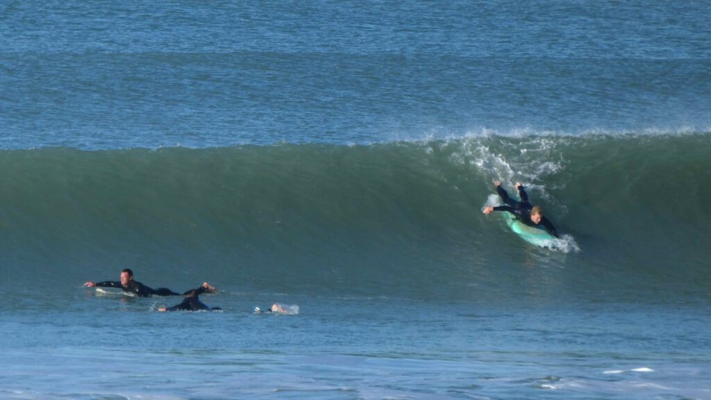 We zitten nog steeds aan de Atlantische Oceaan en de golven zijn spectaculair. We krijgen nauwelijks genoeg van het kijken naar dit schouwspel, mede daar een eenzame planksurfer onder een golf probeert door te surfen, wat hem daadwerkelijk een paar keer lukt. Het is een heerlijk rustig plekje voor de komende nachten. Hopen dat het weer minder slecht wordt dan de voorspellingen aangeven😞.