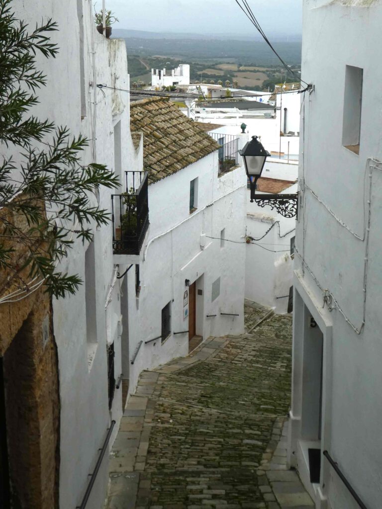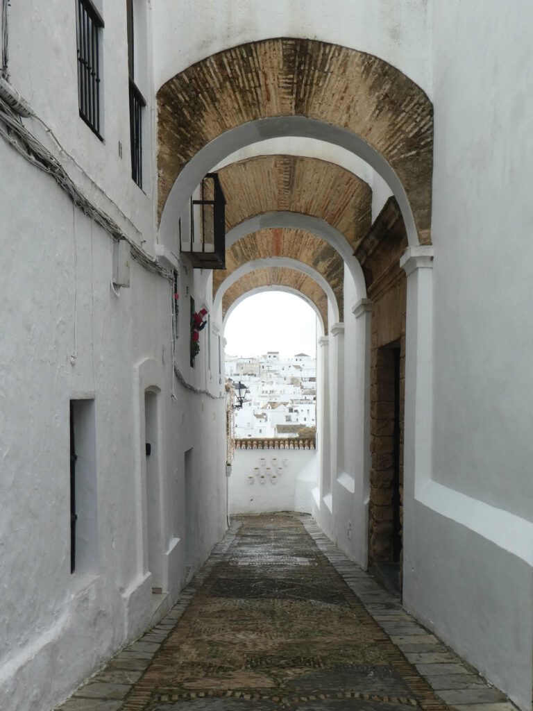 Na een hele ochtend de regen uitgezeten te hebben in de caravan, gaan we vanmiddag op stap. Onze eerste stop is het mooie Vejer de la Frontera, één van de vele witte pittoreske dorpjes in Andalusië. Helaas schijnt de zon vandaag niet in de witte steile straatjes, maar toch is het leuk om er doorheen te wandelen. De barretjes zitten natuurlijk op z’n Spaans weer afgeladen vol rondom dit tijdstip😁.