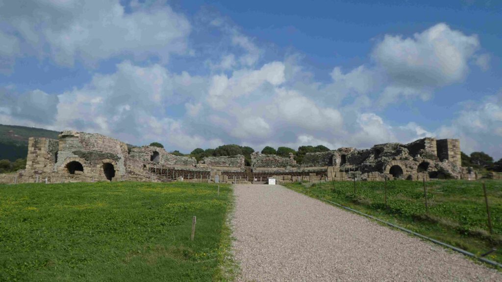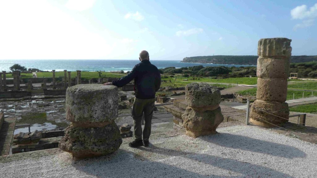 Na al het zand uit de oren en haren (en waar verder nog meer) gedouched te hebben, gaan we weer op weg met de caravan. Ons doel voor vandaag is de archeologische site Baelo Claudia bij het gehucht Bolonia. Deze Romeinse stad was 2000 jaar geleden belangrijk vanwege de tonijnvangst en het vervaardigen van garum; een gefermenteerde vissaus. Tijdens de heerschappij van de keizers Augustus en Claudius floreerde de stad, maar een tsunami in de 2e eeuw na Chr. verwoestte bijna de gehele stad. Toch is er nog voldoende overgebleven en weer overeind gezet, waardoor deze site het bezichtigen meer dan waard is. En nee, we zijn niet in Griekenland😉.