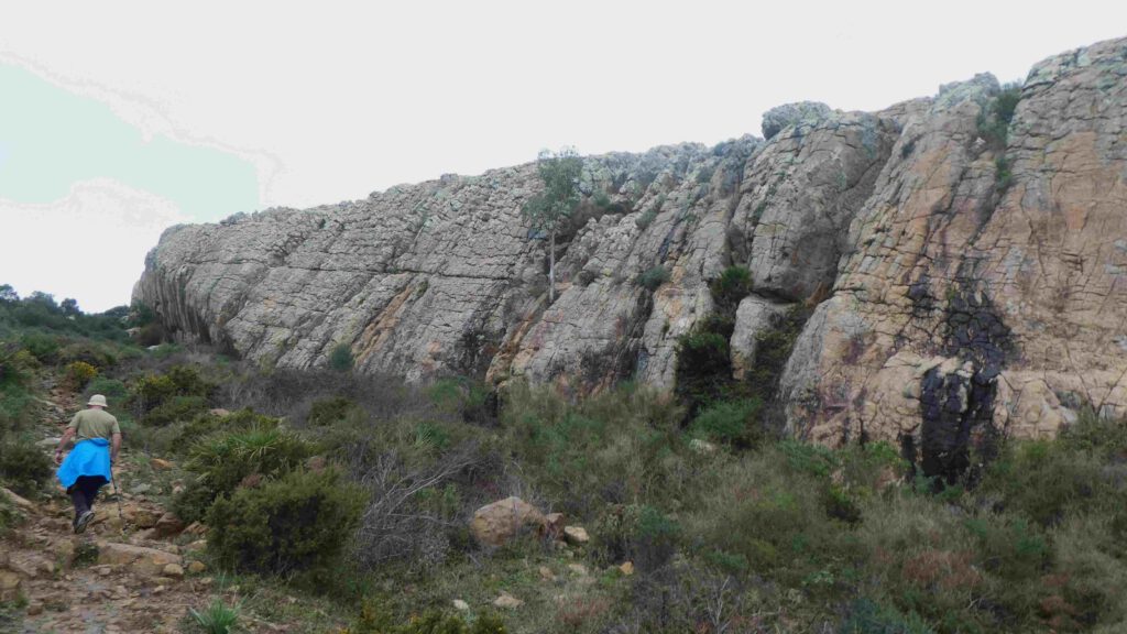 15 december: het barslechte weer in Marokko zorgt dat we hier ook een staartje meekrijgen. Het is niet koud, maar de zon laat zich nauwelijks zien. Na de lunch staat er een bergwandeling op het programma van de reisleidster. Vanuit het gehucht Betis wandelen we langs een schitterende rotswand, waar een heleboel rotsklimroutes te vinden zijn, omhoog naar een uitkijkpunt op 442 meter hoogte. Hier zweven de vale gieren vlak langs, boven en onder ons en is het volop genieten. Het is een prachtige plek zo met het uitzicht op de kust.