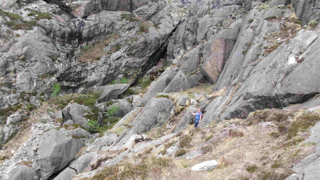 6 mei: En verder gaat het westwaarts langs de zuidkust. Onze eerste stop is in Flekkefjord, wat een leuke Hollandse wijk heeft met allerlei kleine witte huizen, waar vroeger de timmerlieden en haringvissers afkomstig uit Nederland hebben gewoond. Zoals bekend zijn de Hollanders in de 17e eeuw vooral rijk geworden met de haringvangst en de uitvinding van het haringkaken, waardoor de haring langer vers bleef, en de handel met de landen aan de Oostzee in graan en hout. Daarna rijden we naar ons kampeerplekje voor vannacht, weliswaar aan de toeristische weg nummer 44, maar prachtig aan het water omringd door steile rotswanden en afgeschermd van de weg door rotsen. Na de lunch rijden we met de auto (want fietsen is echt niet te doen) naar het beginpunt van onze middagwandeling. We klimmen 196 meter steil omhoog langs diepe afgronden naar de Brufjellet en genieten van het schitterende uitzicht. De bedoeling was ook om via een semi klettersteig naar de pothols aan zee af te dalen, maar op tweederde dachten we dat we ook weer dezelfde zeer uitdagende ‘steig’ omhoog moesten en toen heeft Gido besloten om terug te keren en de drone op te laten om het uitzicht van het einde van de wandeling te visualiseren. Helaas heeft Gido niet goed kunnen zien waar de gaten (pothols) zaten, zodat hij te laag aan het filmen was, dus filmpje mislukt. Dan maar een foto van het infobord :-).